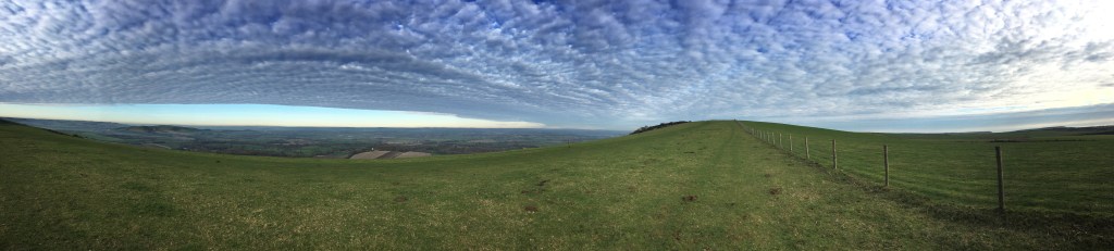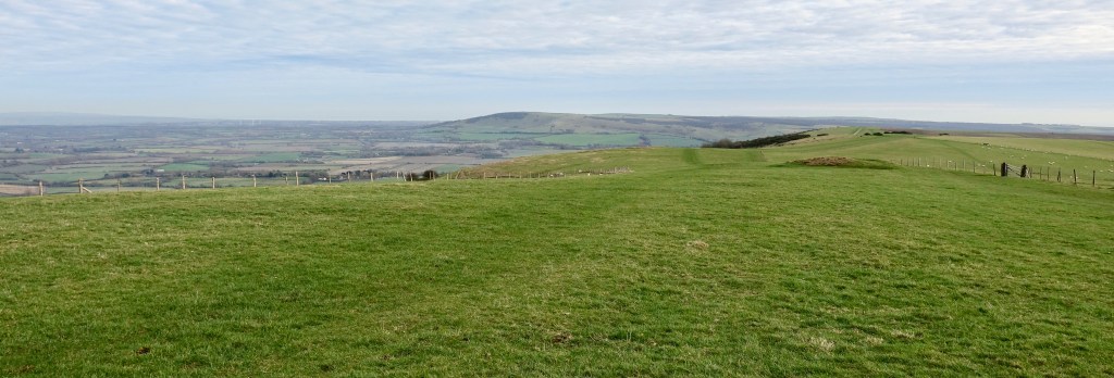 The path meanders with the river until it reaches an old swing bridge (pic above). Cross this to the E and continue along the lane until you get to Southease station. Use the railway crossing and continue until a group of buildings which include the YHA at Itford farm. Turn right immediately before the buildings (signposted South Downs Way) and follow the path over the footbridge that crosses the busy A26. Once you are over the bridge the Downs come down to meet you. Take the long path snaking up the hill or go straight up the grassy hill to the top of Itford Hill and continue E on the SD Way past Red Lion Pond. The views really open up here with Newhaven to the S and the Ouse valley N with views of Lewes and its prominent castle. The walking up here is really enjoyable, easy and freeing. Continue E for another mile or so, cross a track and head for the monolithic radio masts. Then, in less than a mile, cross another small road and car park and continue for approx. 1 mile till you reach Firle Beacon (217m 711 ft.) The views are vast – N to the Weald and S across rolling downs to the sea.