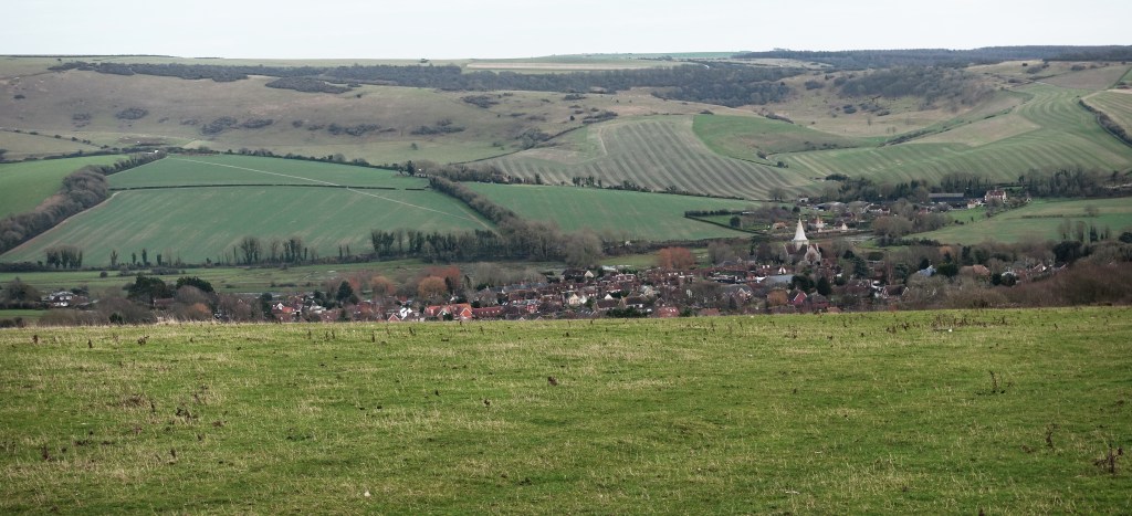 The route now heads SE towards Alfriston past another car park through farmland until see the village and come to a gate with three routes to the village. Take the one directly in front (not the two to the left) this being the SD Way which winds down a hedged lane into the village. There are places for coffee/tea and pubs in Alfriston (the George Inn is open early afternoon and very cosy) and an incredibly beautiful church and Green. It’s worth spending a few hours exploring the beautiful architecture. I needed to get back to Lewes and there are alternatives. There is a bus (just the one) at 16.00 or Berwick station with an hourly service three miles to the N on footpaths. The alternatives are a taxi to Lewes or the cheaper option (as suggested by a local in the George) a Seaford taxi to Seaford railway station then a quick train to Lewes.