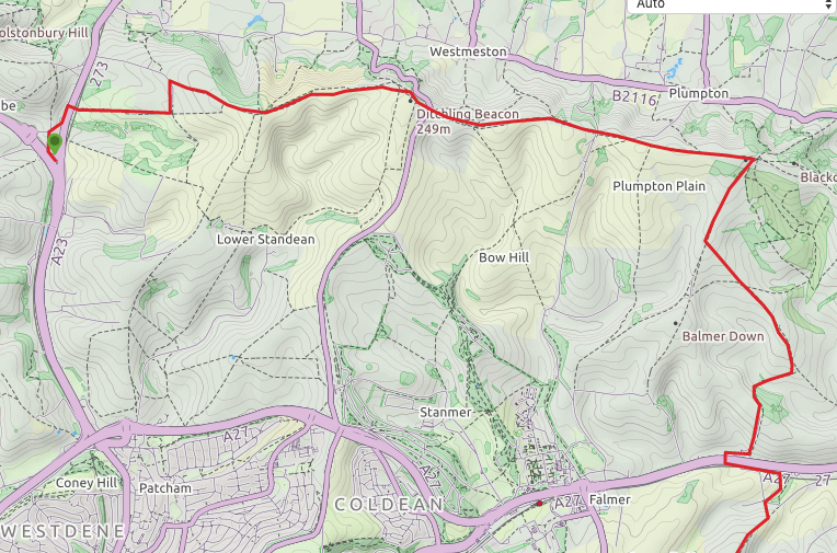 The weather of early February 2020 has been so much better for getting out. It’s still quite gross underfoot in places but the ground has dried out enough to make a long walk less of an assault course. So with a weather forecast of sunshine, a light NE wind and single figures C, I wanted to get back to Sussex to complete another section of the South Downs Way (SDW), an accidental inspiration borne of having completed a couple of sections previously. The object is to use public transport where I can to get there and back (home in London) in a day and complete a decent walk in between. In this instance 15.5 miles from Pyecombe to Southease Station. From Clapham Junction I took the train to Hassocks Station then a quick 5 min walk to the A273 to catch a bus to Pyecombe. In just over an hour and I was at the foot of the Downs.
