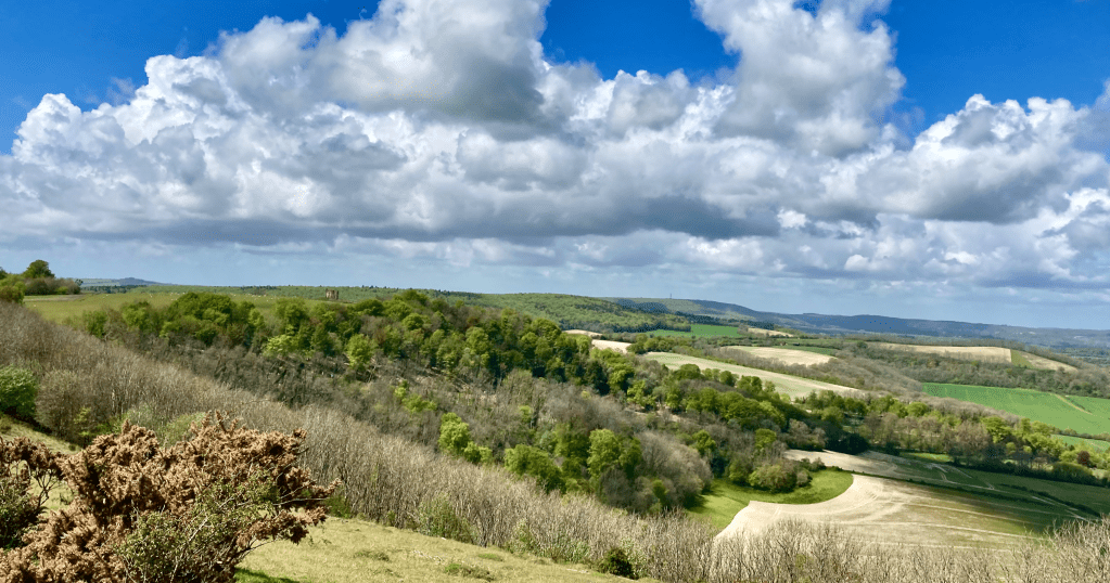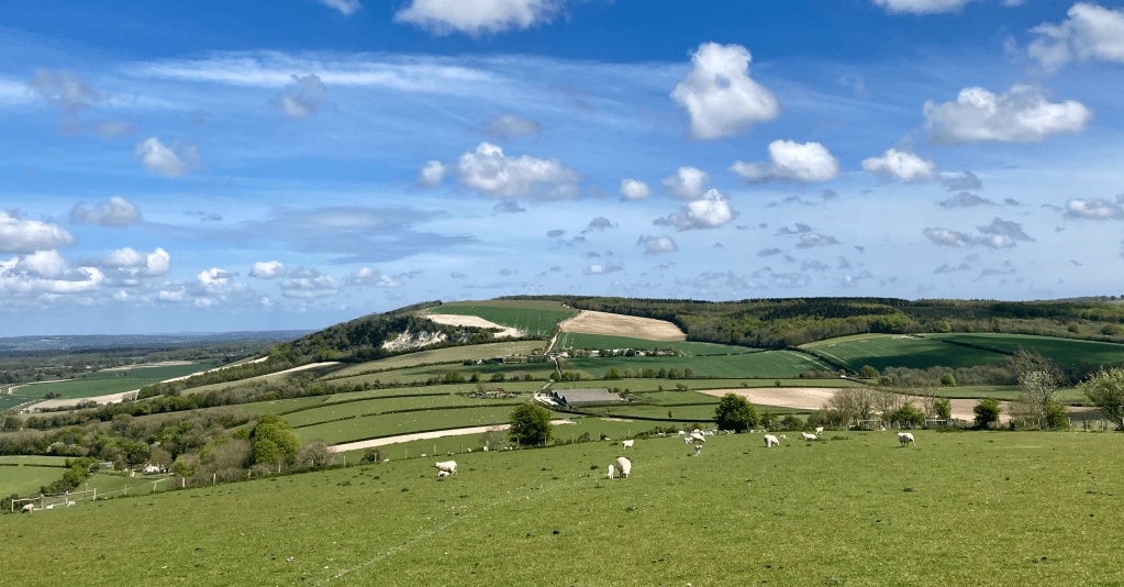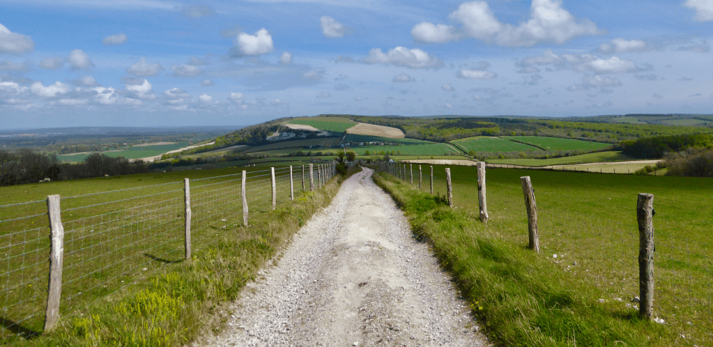 It is a delight to leave London and get walking on the South Downs. Early May, mixed weather, hot sun one minute, showers the next, the new green of the woods, Beech hangers, complex bird song in the hedgerows, wild flowers in the verges, wide skies with views to match from the top of the downs, Skylarks the soundtrack.