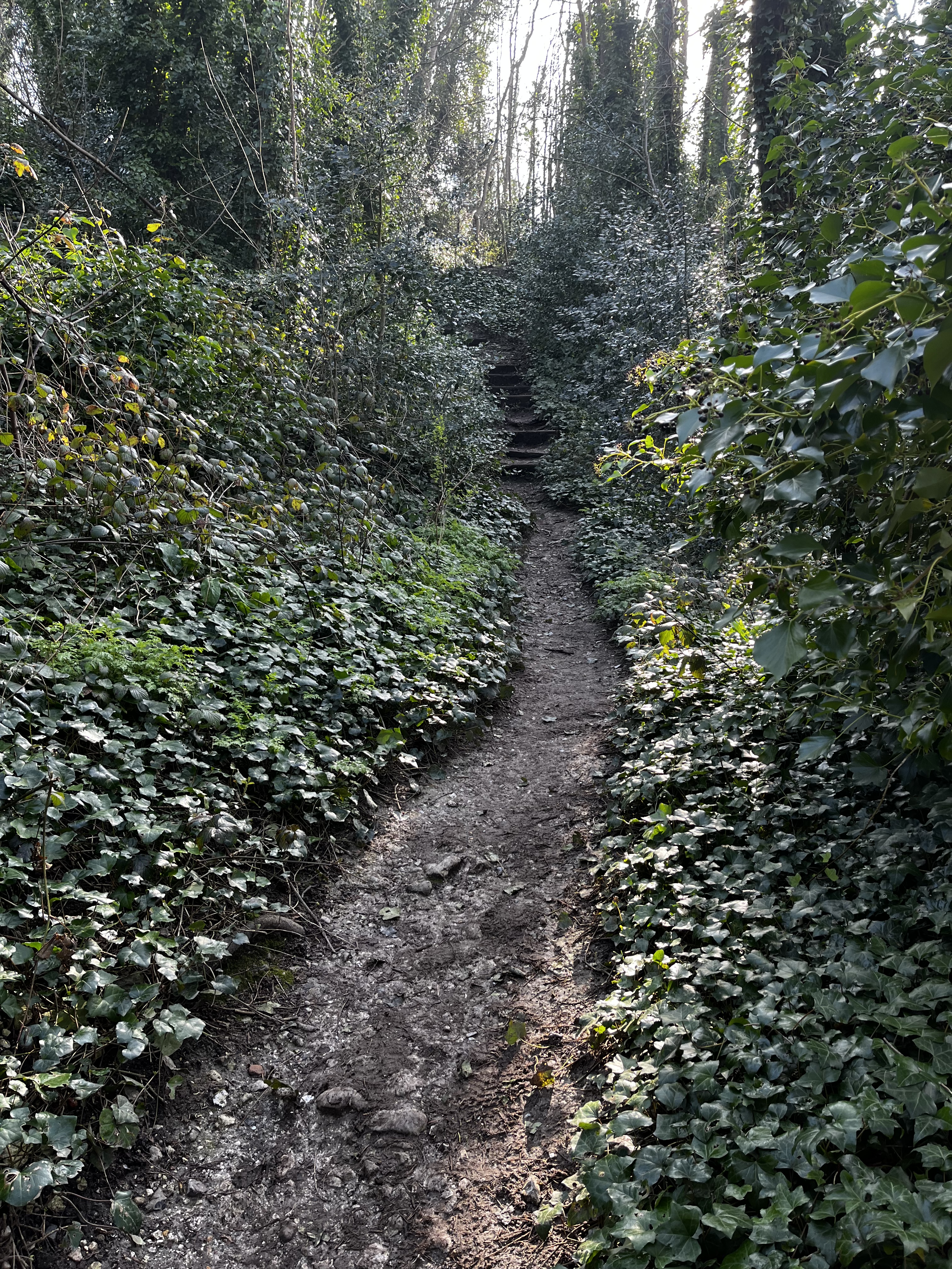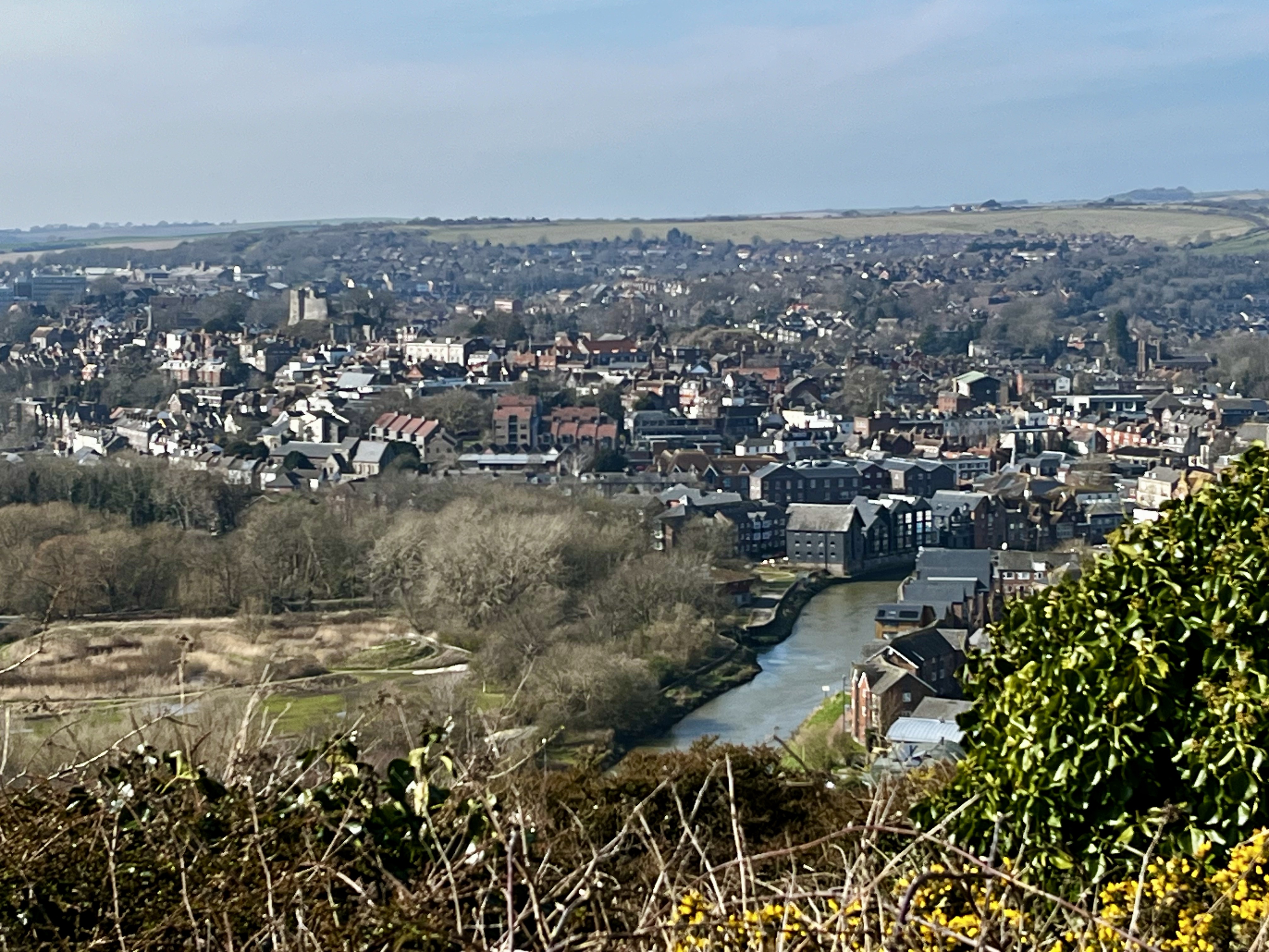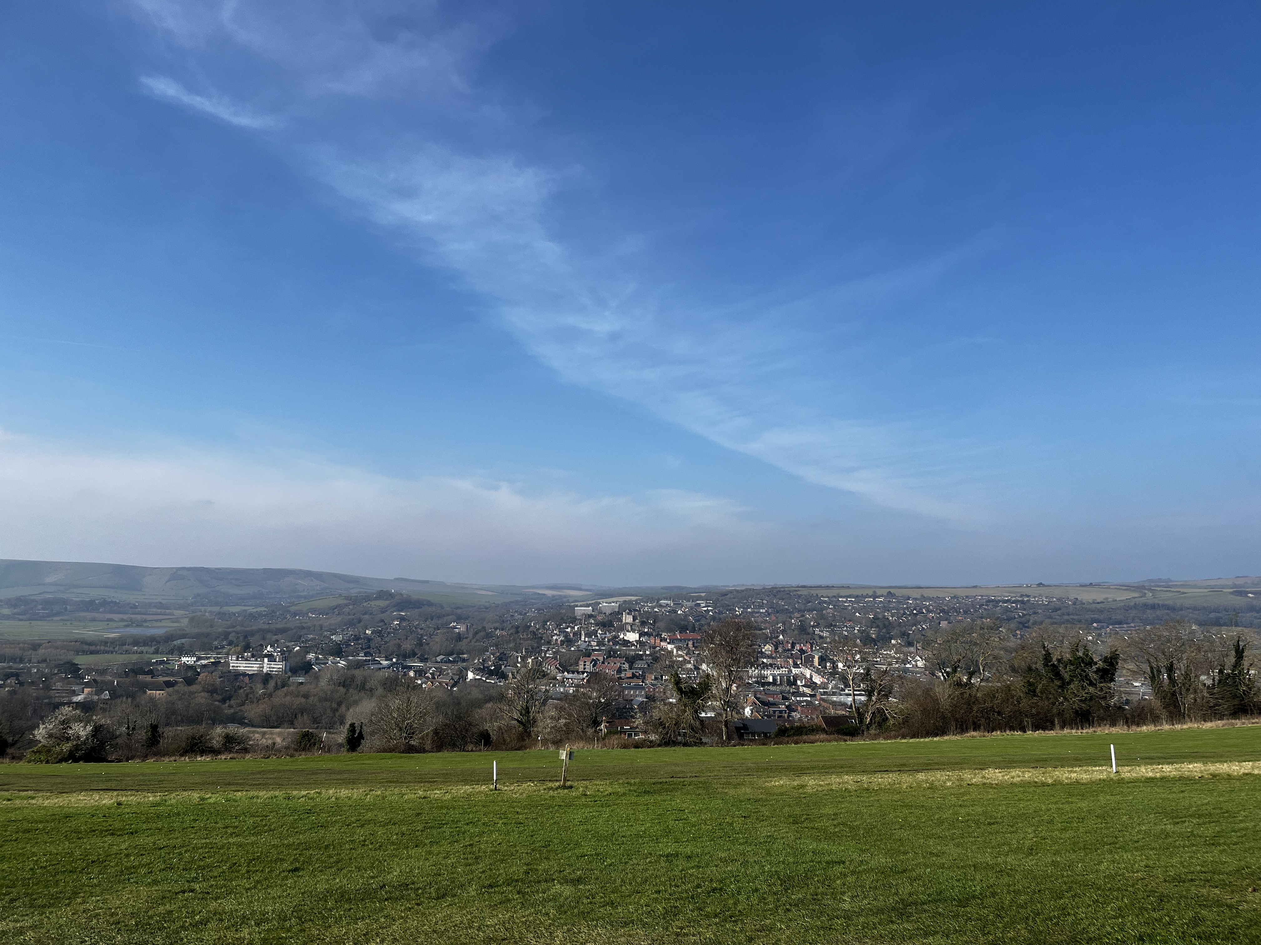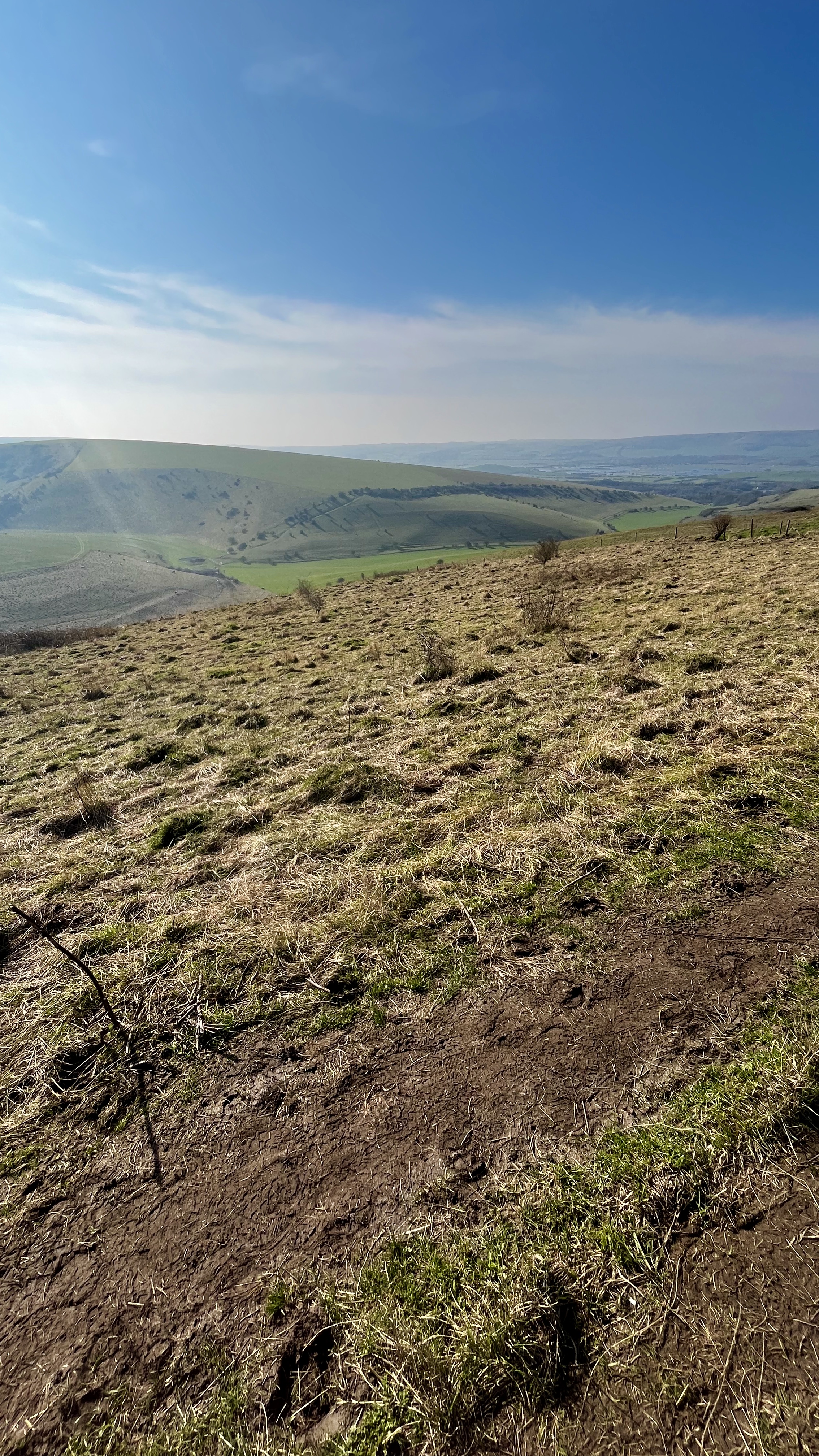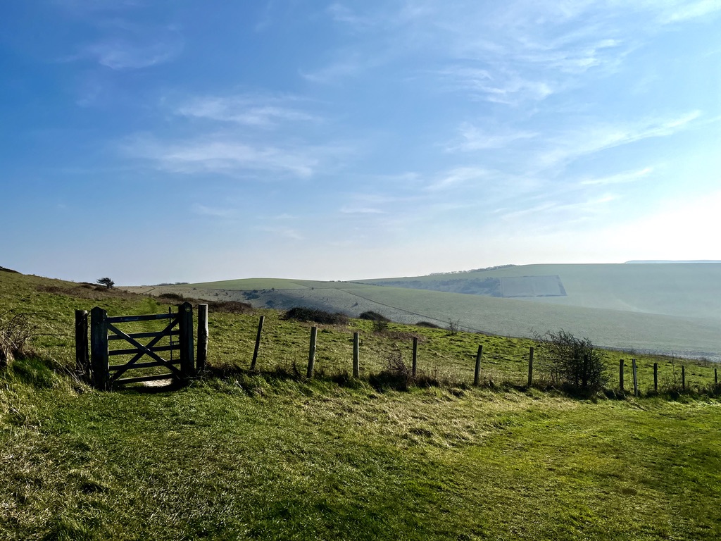 It isn’t a long walk, the first half mile via the town centre with, for me, a stop off on Station Street at ‘Carafe’ for a cup of tea. The route from the station is north up to High Street and from here you can see the downs you’ll be climbing, towering above the lower town. Walk east down high street and cross the bridge over the River Ouse by the Harveys brewery continuing on the level to the end of the street. Cross South Street and make your way up Chapel Hill, a steep, narrow road between beautiful cottages. At .75 miles take the small lane to the left, then through the gate onto a footpath and steps. This is the hardest part of the walk as it’s a short sharp climb to a golf course from which there are views of the town as a reward for the effort.