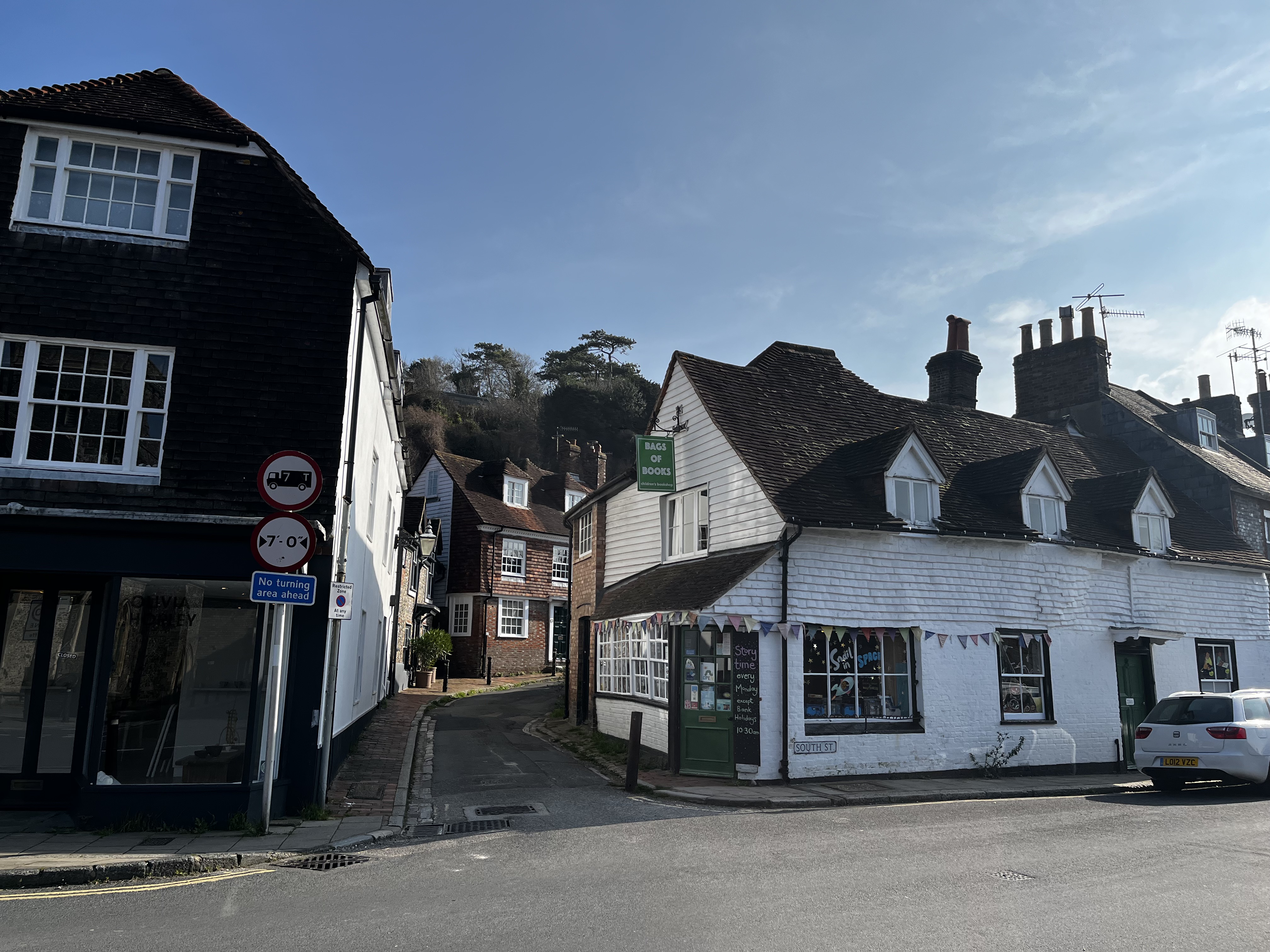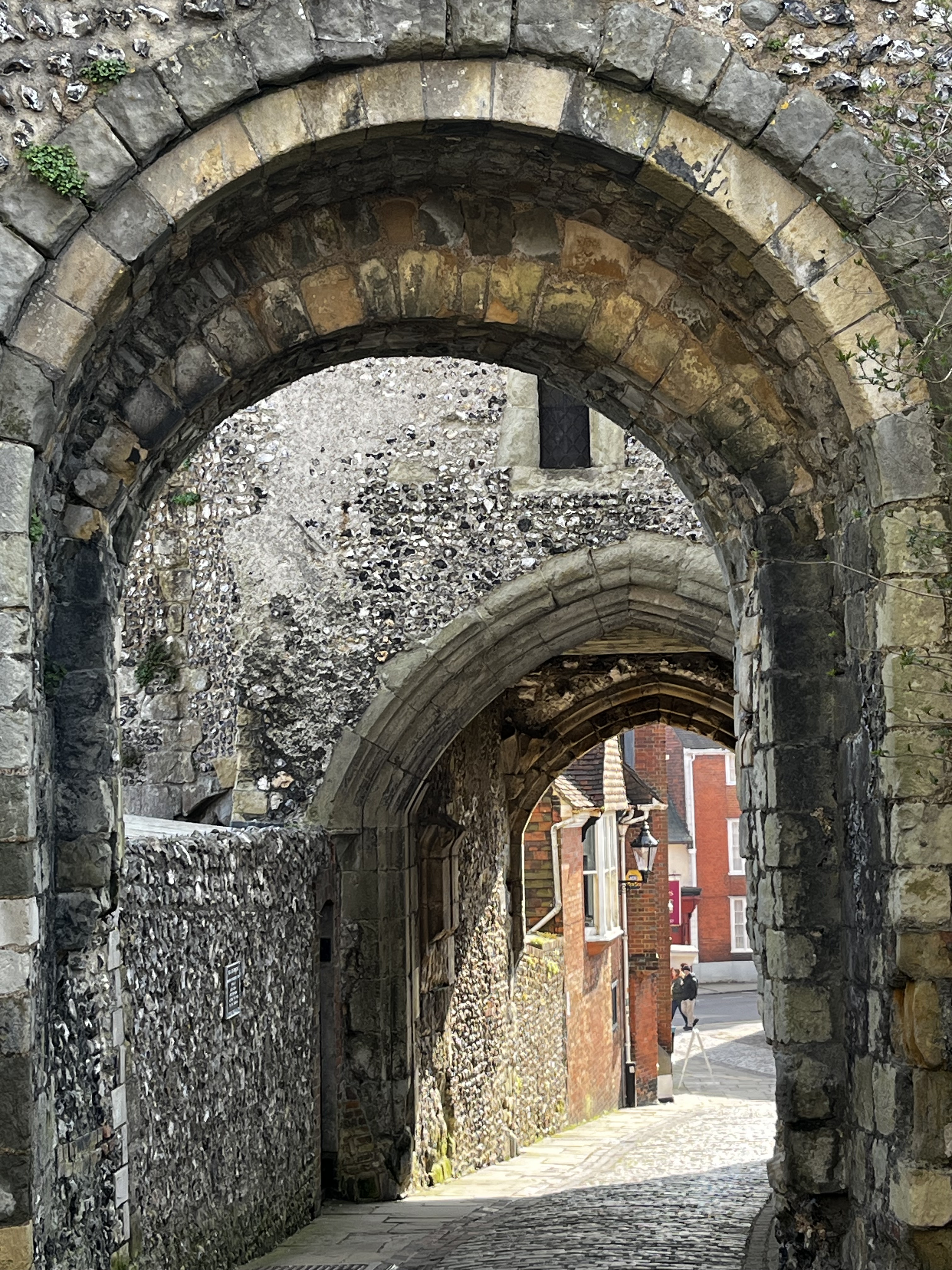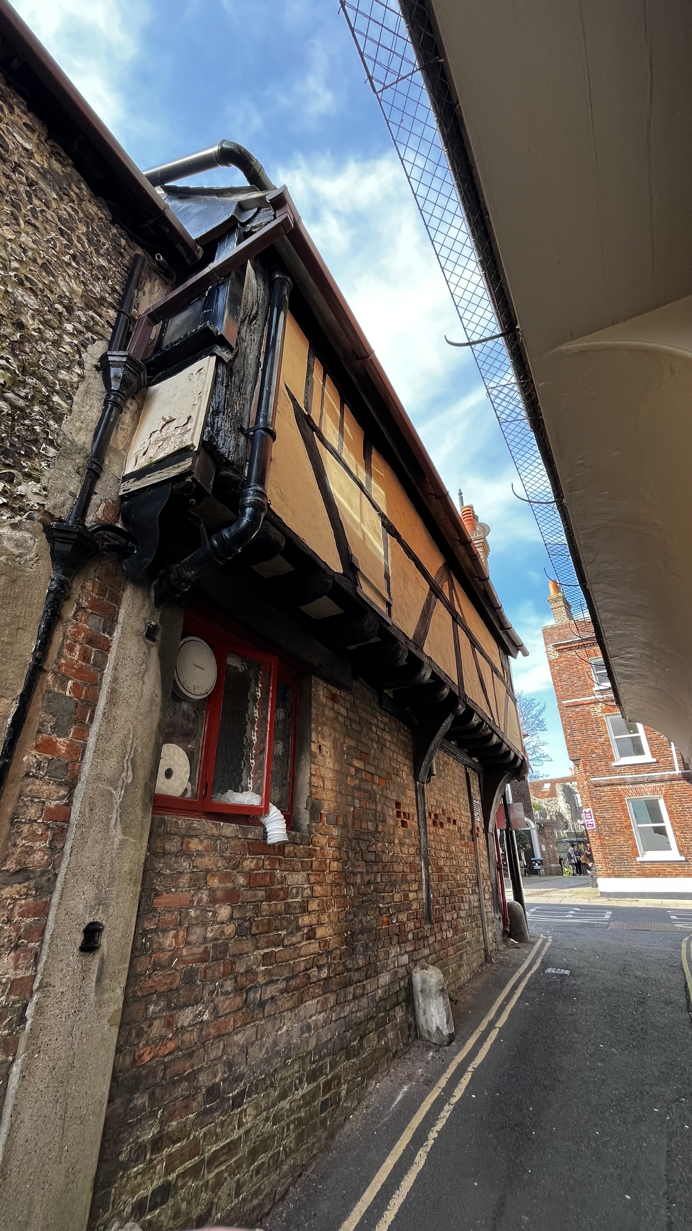 Pics of the town and its medieval architecture: dew pond in the dry valley and two of the town from the top of Chapel Lane as you come off the downs.