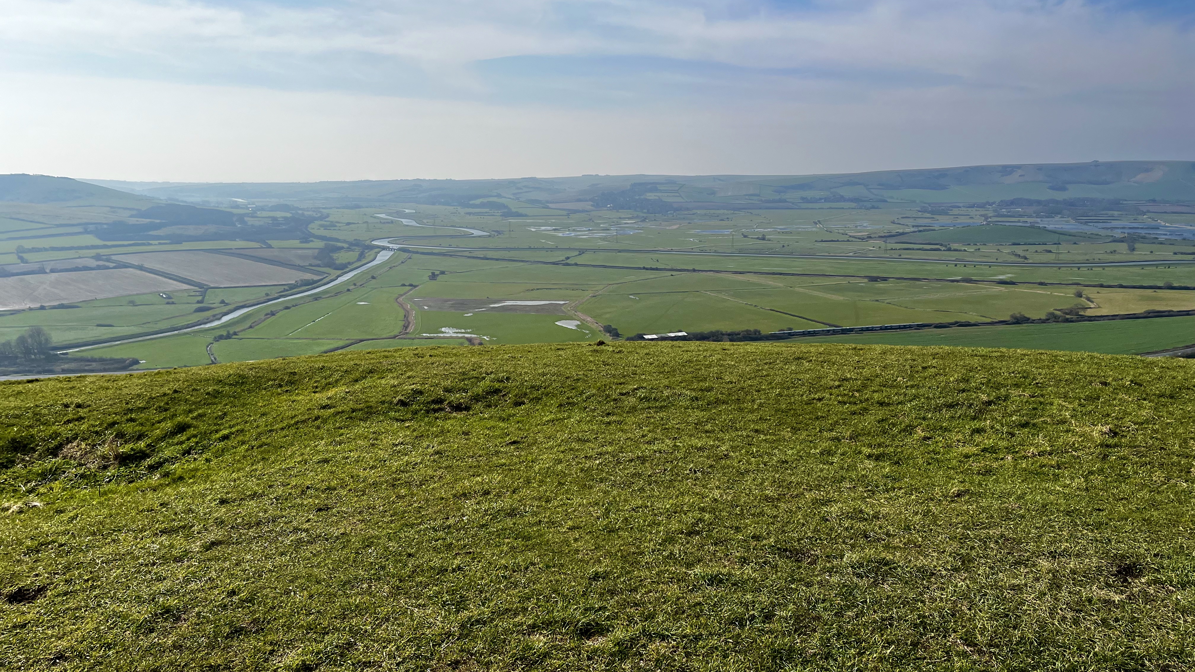 The views from the fort are amazing, the steep scarp plunging into the sweep of the flooded Ouse valley, the views of the downs, Lewes and weald explain the fort’s important position in the landscape. Despite the strong sun, a brisk easterly wind made it a fresh day so the lee of the forts ramparts made a great place to sit and enjoy an early lunch in the sun out of the wind. I was in no great rush and the opportunity to simply sit on my warm, dry foam mat and take in the vast scene in the noonday sun was relaxing. It’s a good spot.