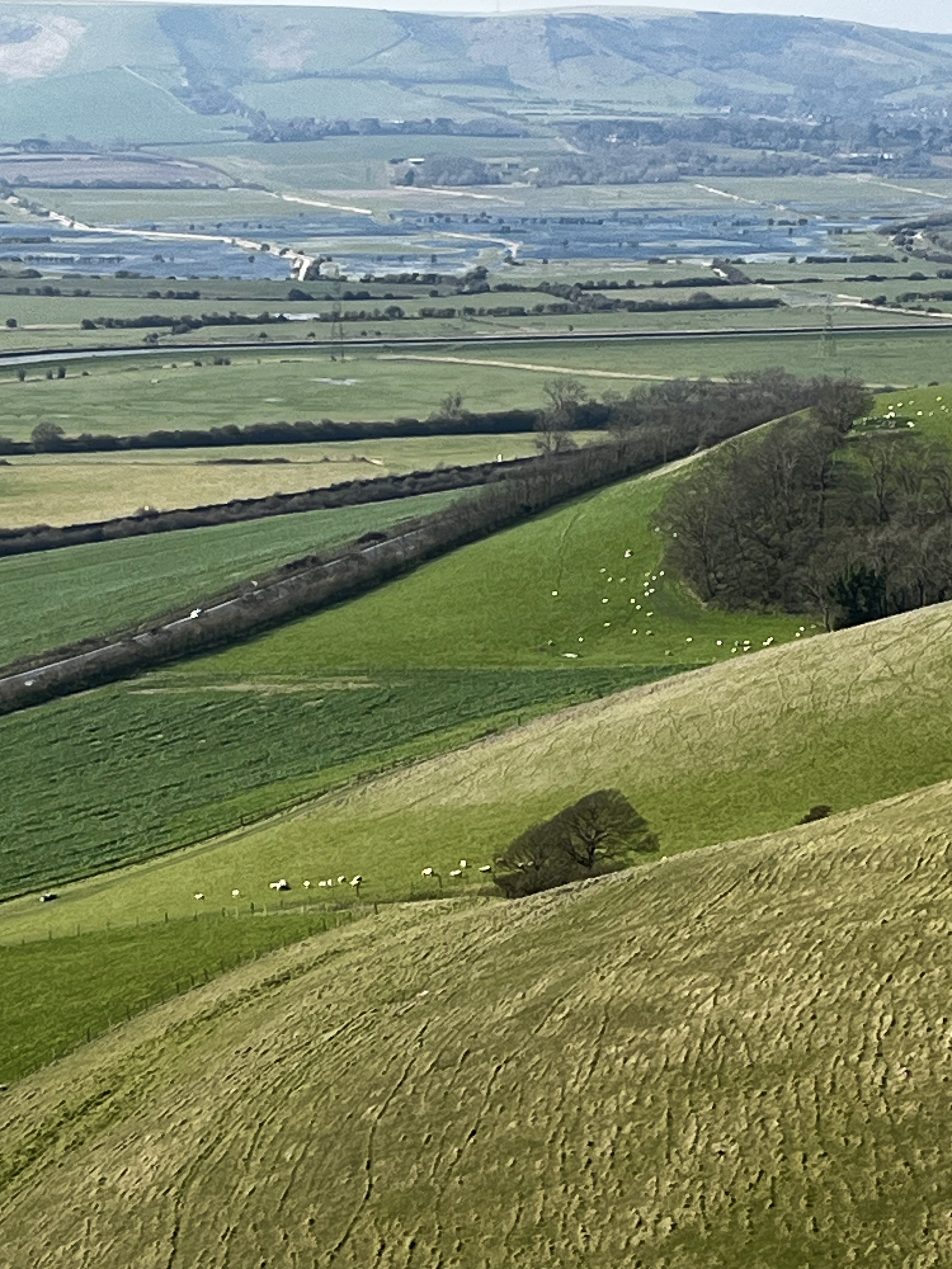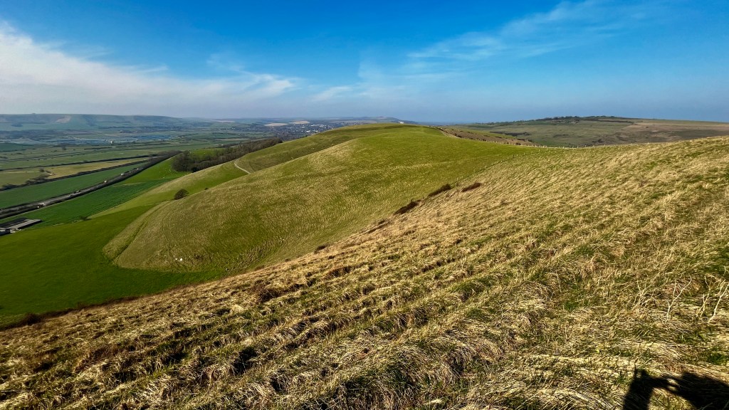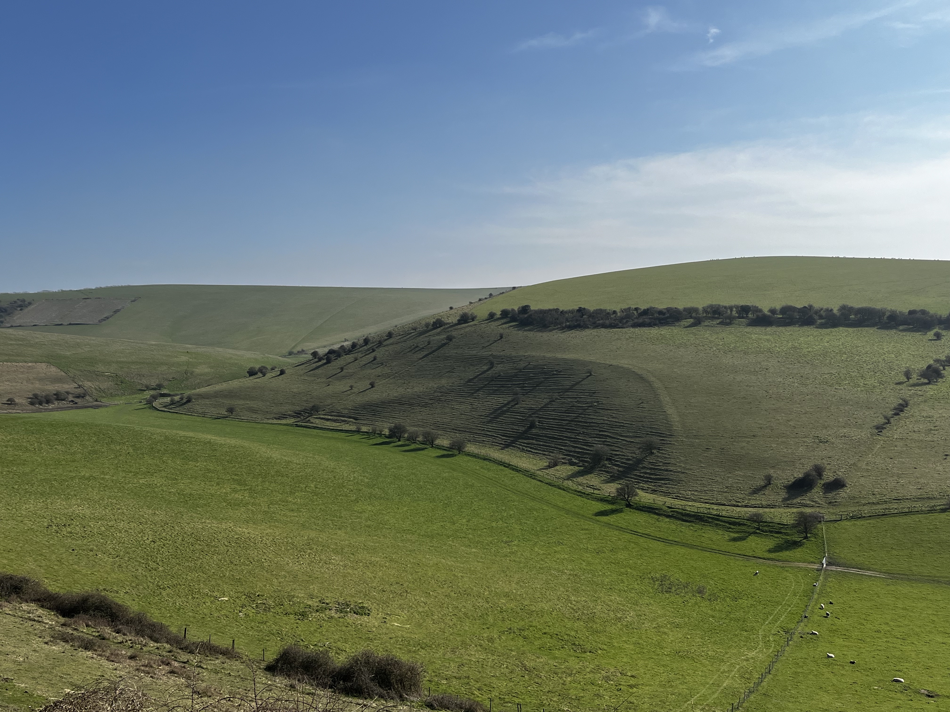 Views en route to the fort, the bottom two from Mount Caburn. The walk offers a pleasant mix of downland wildness and pasture.